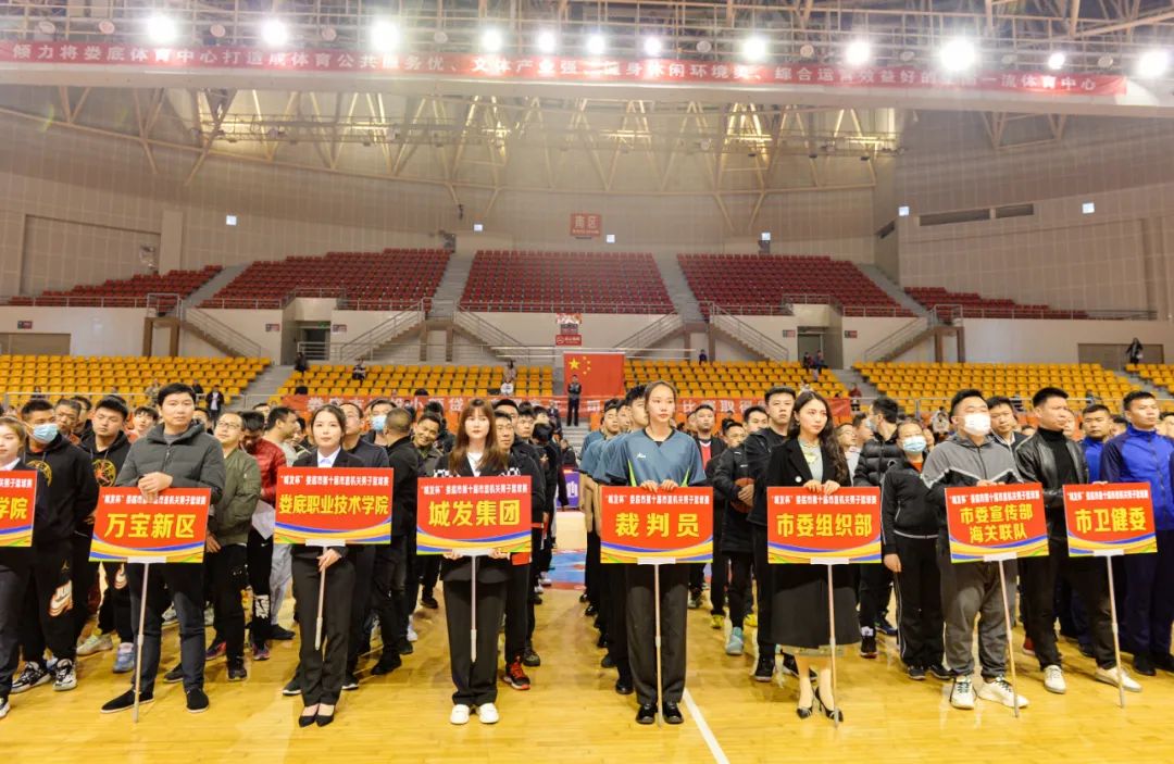 12月3日,由婁底市總工會、婁底市文旅廣體局主辦,市城發(fā)集團冠名的“城發(fā)杯”婁底市第10屆市直機關(guān)男子籃球賽開幕式在婁底市體育館隆重舉行。婁底市政協(xié)主席姚兵,婁底市委常委、宣傳部部長胡忠威,婁底市人民政府副市長李有才,主辦單位和協(xié)辦單位的領(lǐng)導(dǎo)以及參賽的31支球隊參加了開幕式。