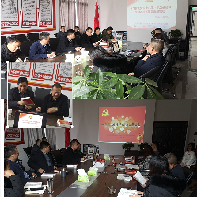 為深入學(xué)習(xí)貫徹黨的十九屆六中全會精神,12月14日,城發(fā)集團(tuán)黨委委員、監(jiān)事會主席曹林平至房產(chǎn)公司宣講黨的十九屆六中全會精神。房產(chǎn)公司支部書記、總經(jīng)理劉偉主持宣講會。
